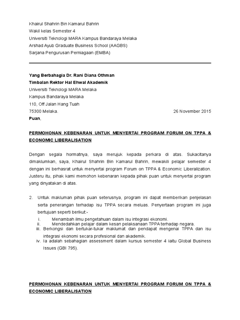 Surat Permohonan Kebenaran Emba Pdf